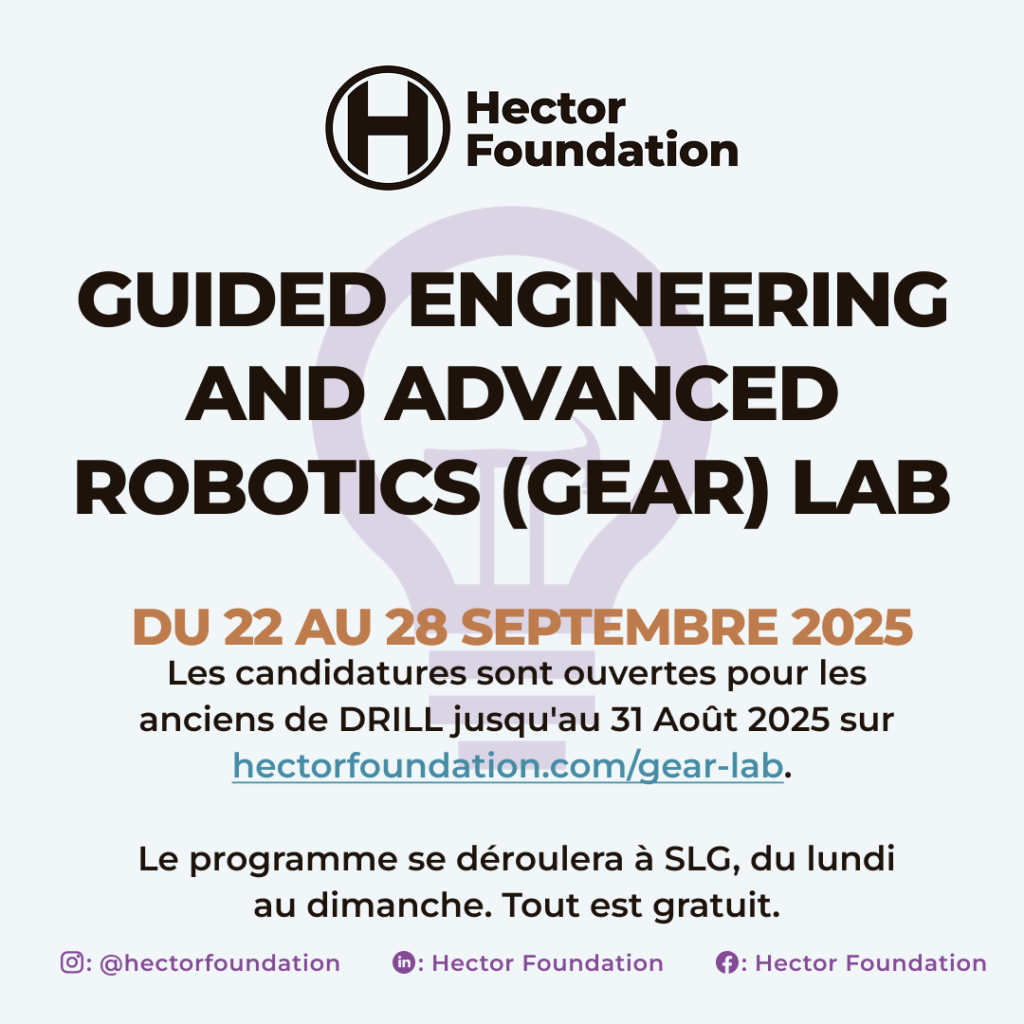 GEAR LAB – Guided Engineering & Advanced Robotics Lab est un laboratoire de robotique avancé visant à initier 20 alumni du programme DRILL aux principes fondamentaux de la dynamique et des contrôles.